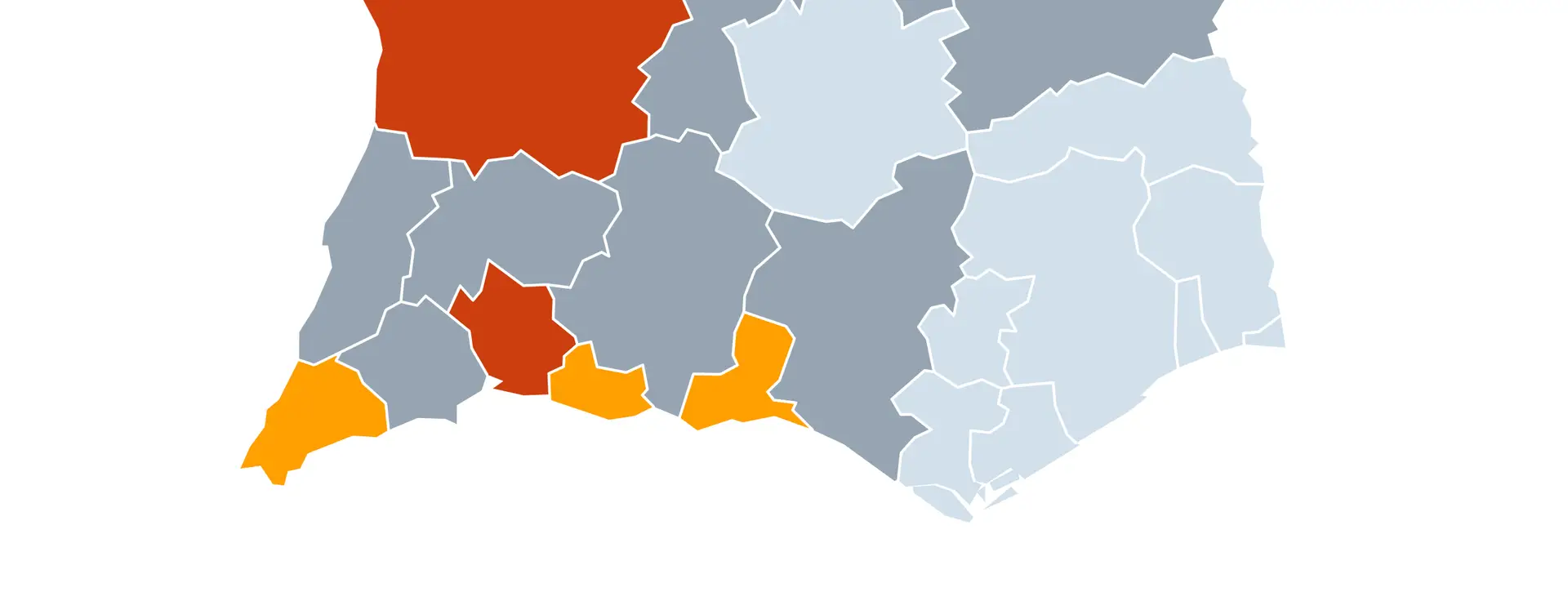 O número de concelhos considerados de risco elevado permanece inalterado, 92, enquanto os municípios de risco moderado são agora 77, mais quatro do que no princípio do mês.